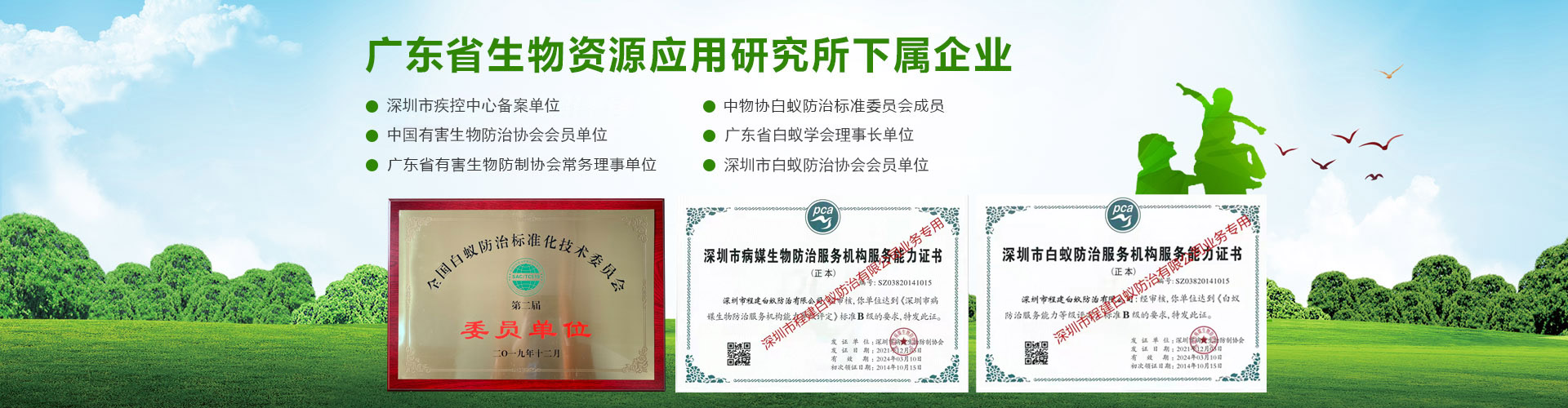 專(zhuān)注于徹底根治、防治結(jié)合,售后跟蹤服務(wù),專(zhuān)業(yè)服務(wù)工程師有豐富實(shí)戰(zhàn)經(jīng)驗(yàn)超過(guò)十年。持有專(zhuān)業(yè)資格證書(shū)認(rèn)證:“有害生物防制服務(wù)機(jī)構(gòu)服務(wù)能力證書(shū)B(niǎo)級(jí)”、“白蟻防治服務(wù)機(jī)構(gòu)服務(wù)能力證書(shū)B(niǎo)級(jí)”所有員工持有“深圳市白蟻防治上崗證”和“深圳市除蟲(chóng)滅鼠上崗證”,雙資格證上崗服務(wù)。榮獲過(guò):“優(yōu)質(zhì)服務(wù)示范單位”、“白蟻防治服務(wù)信譽(yù)AAA級(jí)單位”、“深圳市白蟻防治先進(jìn)單位”、“深圳市十大白蟻防治品牌”、“深圳市殺蟲(chóng)公司”、“深圳市消殺公司”先進(jìn)單位等榮譽(yù)。